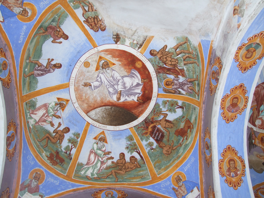 Изображение на Бог, който създава света според християнските представи - снимката е направена от нашия екип в Рилския манастир. Повече информация за църквите и манастирите в България можете да получите в тази секция на нашия сайт. Бог обикновено е разглеждан като всезнаещ, всемогъщ, вездесъщ и имащ вечно и необходимо съществуване. Тези характеристики се прилагат или по аналогия, или се приемат буквално. Най-често Бог се приема за безтелесен (нематериален). Безтелесността и телесността на Бог са свързани с представите за неговата трансцендентност (битие извън природата) или иманентност (битие в природата), както и със синтетични възгледи, като „иманентната трансцендентност“. Бог може да бъде разглеждан като персонифициран или неперсонифициран. В теизма Бог е създател и крепител на Вселената, докато в деизма той е създател, но не и крепител. В пантеизма Бог е самата Вселена. При атеизма отсъства вяра в Бог, докато за агностицизма съществуването на Бог е неизвестно или непознаваемо. Бог е смятан и за източник на всяко морално задължение. Много известни философи са развивали аргументи за и против съществуването на Бог. Монотеистите наричат своите богове с различни имена, определени в съответната религия, като някои от тези наименования отразяват определени културни разбирания за идентичността и атрибутите на техния бог. В древноегипетския атонизъм, вероятно най-ранната известна монотеистична религия, Бог се нарича Атон и е приеман за единственото истинско Върховно същество и създател на Вселената. В Стария завет и юдаизма като имена на Бог се използват Елохим, Адонаи, тетраграматонът (обикновено транскрибиран в християнството като Яхве или Йехова) и други. В християнската доктрина за Светата Троица Бог съществува едновременно като три „личности“ - Отец, Син и Свети Дух. В исляма се използва името Аллах, като наред с него съществуват и множество други титли на Бог. В монотеистичните интерпретации на индуизма Бог е наричан Брахман. Сред имената на Бог, използвани в други монотеистични религии, са Баха в бахайството, Вахигуру в сикхизма, Санг Хянг Видхи Васа в балийския индуизъм и Ахура Мазда в зороастризма. Множеството различни концепции за Бог и противоречиви твърдения за характеристиките, целите и действията му водят до развитието на идеите на омнитеизма, пандеизма или перениализма, според който има една базисна теологична истина, от която всички религии извличат свое частично разбиране. Според много философи и теолози последователите на различните големи световни религии всъщност почитат един Бог, но чрез различни, застъпващи се концепции - Бог просто има много различни имена.